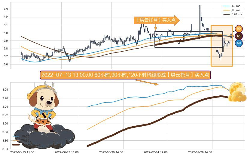 ⚀ 2022-06-20 14:00:00小时-2022-08-04 14:00:00小时显现 60小时-90小时-120小时均线 【烘云托月】买入点 看多信号,后市看涨,买入