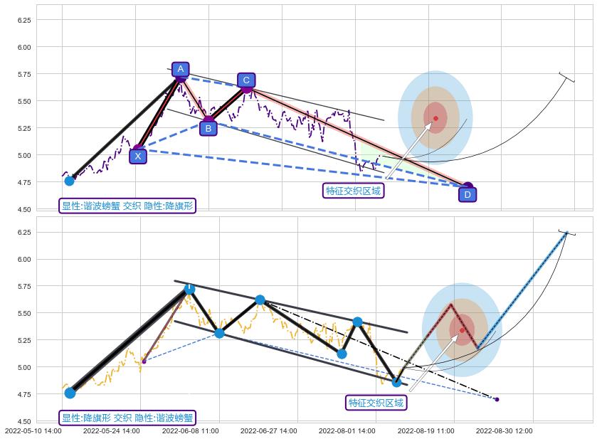 ➣ 未完成【螃蟹】形态起点X: 05-25:10, 已到达C点: 06-15:11, 预测最终D点: 08-25:10, 共212交易小时