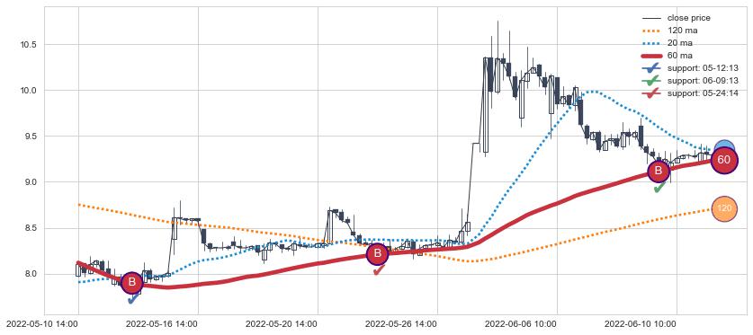 ⚀ 2022-06-09 10:00:00小时-2022-08-01 14:00:00小时显现 30小时-60小时-90小时均线 【高山滑雪】买入点 看多信号,后市看涨,买入