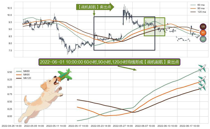 ⚀ 2022-05-13 14:00:00小时-2022-06-17 10:00:00小时显现 60小时-90小时-120小时均线 【战机起航】卖出点 看空信号,后市看跌,卖出