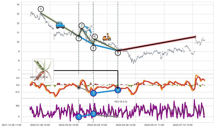 从2022-01-04 09:00至2022-01-17 14:00,共包含51个小时,阶段股价上涨4.37%,阶段股价变动位移路程比: 1 : 6