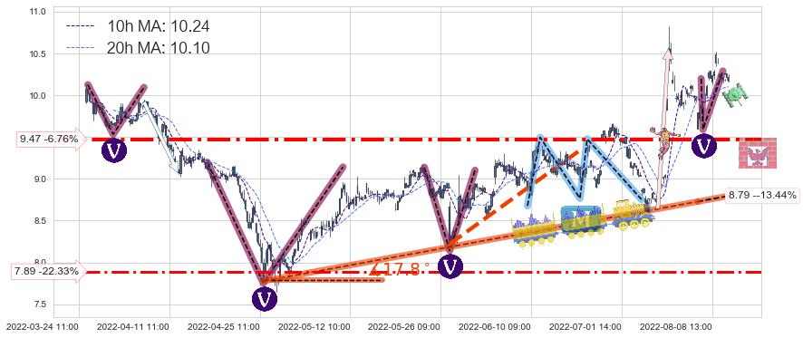 ♘ 支撑价格位9.47,可信任强度84.84%,距离最后交易2022-08-12 14:00形成的收盘价格10.16相差 -6.76%