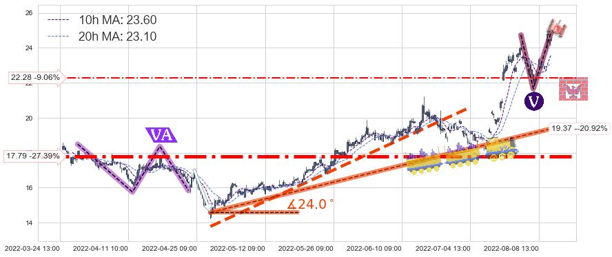 ♞ 10小时均线:23.60,20小时均线:23.10→ 快线>慢线