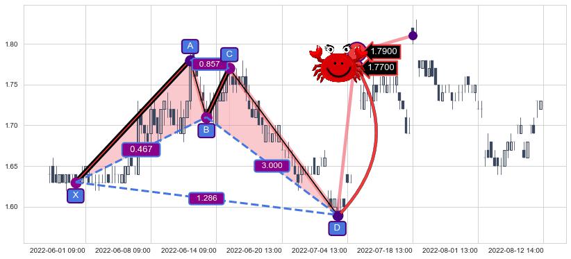 ➣ 已完成【螃蟹】形态起点X: 05-31:11, 终点D: 06-30:14, 共81交易小时