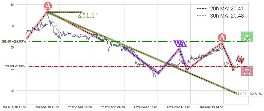 ♞ 20小时均线:20.41,30小时均线:20.48→ 快线<慢线