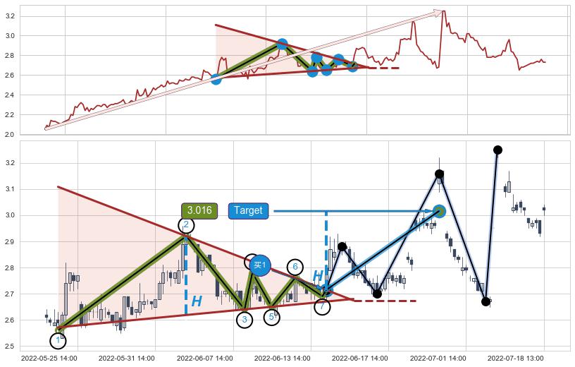 ➢ 【买1】: 激进型 买点 →(06-14:13: 2.714 )形成突破上升【对称】三角形整理【整理】形态