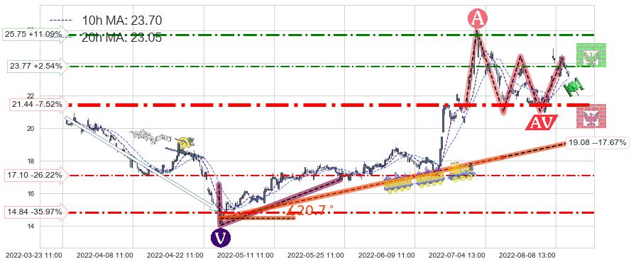 ♘ 阻力价格位23.77,可信任强度54.98%,距离最后交易2022-08-12 14:00形成的收盘价格23.18相差 +2.54%