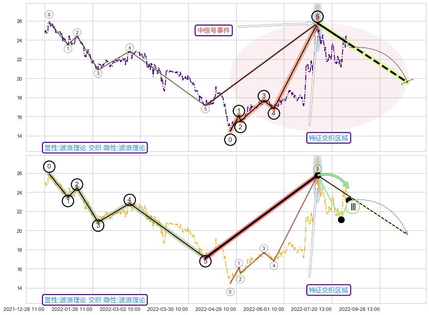 从2022-03-23 14:00至2022-04-26 13:00,共包含110个小时,阶段股价下跌-31.44%,阶段股价变动位移路程比: 1 : 3