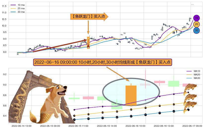 ⚀ 2022-06-16 09:00:00小时显现 10小时-20小时-30小时均线 【鱼跃龙门】买入点 看多信号,后市看涨,买入