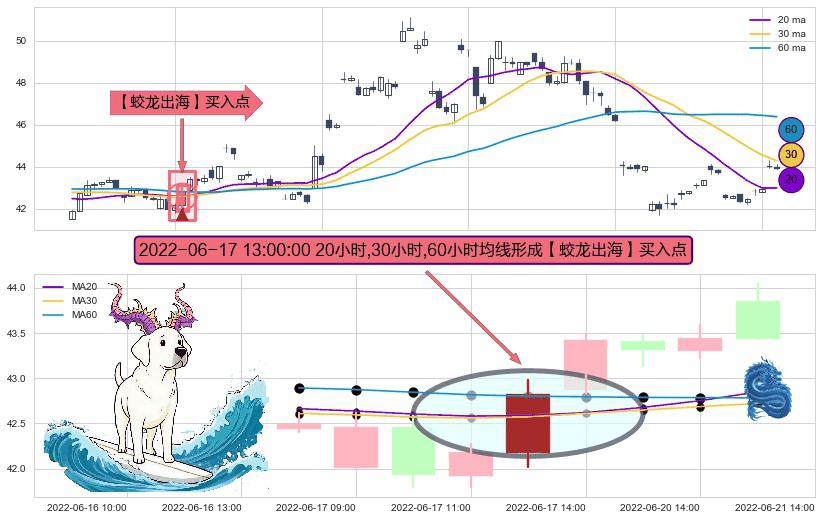 形态多维评估: ⚀ 2022-06-17 13:00:00小时显现 20小时-30小时-60小时均线 【蛟龙出海】买入点 看多信号,后市看涨,买入