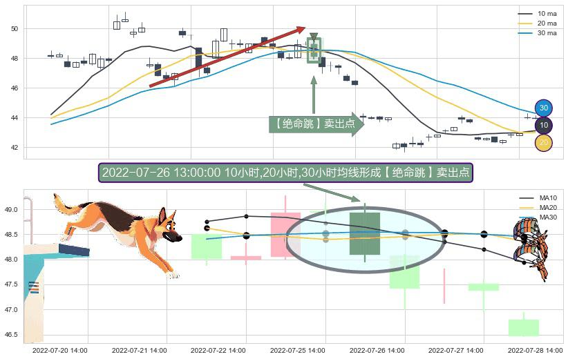 形态多维评估: ⚀ 2022-07-26 13:00:00小时显现 10小时-20小时-30小时均线 【绝命跳】卖出点 看空信号,后市看跌,卖出