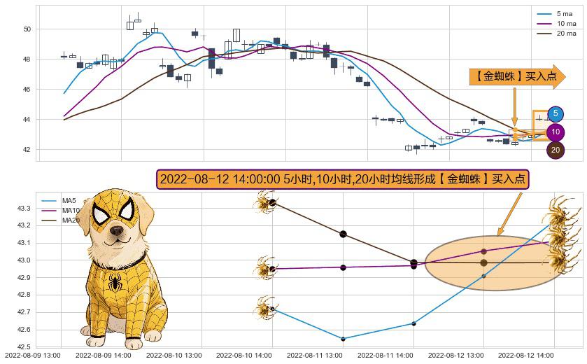 形态多维评估: ⚀ 2022-08-12 14:00:00小时显现 5小时-10小时-20小时均线 【金蜘蛛】买入点 看多信号,后市看涨,买入