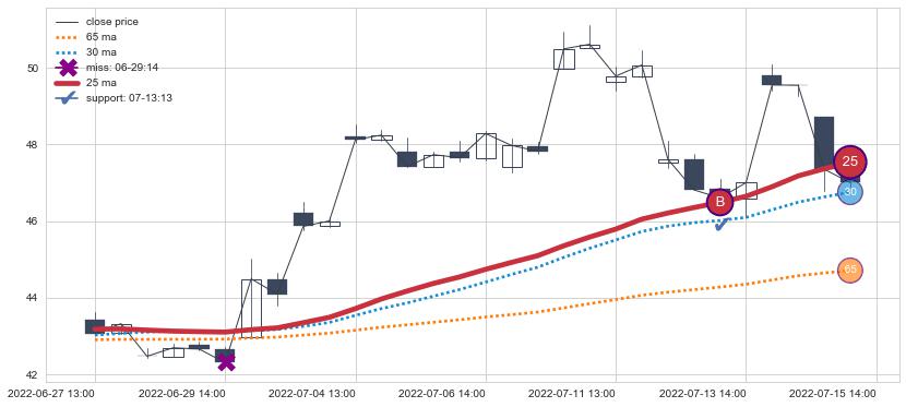 上涨趋势06-27 13:00-07-15 14:00,均线25确认关键支撑1处