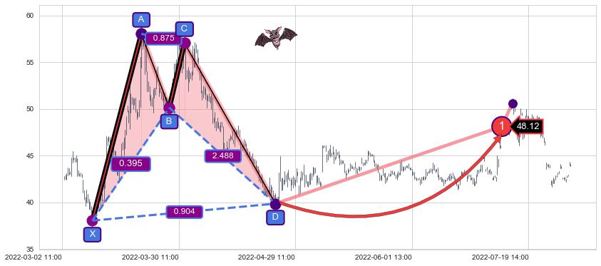 | 7 🅚:降势受阻 ➕ 📡:谐波蝙蝠已到达d点:猜想c下行到达d点后报复性拉升上涨(均值回复) ☞ 看多信号 ⇥ 【🅚线】交织【图形】⇥ 综合量化分数: 51 | > |