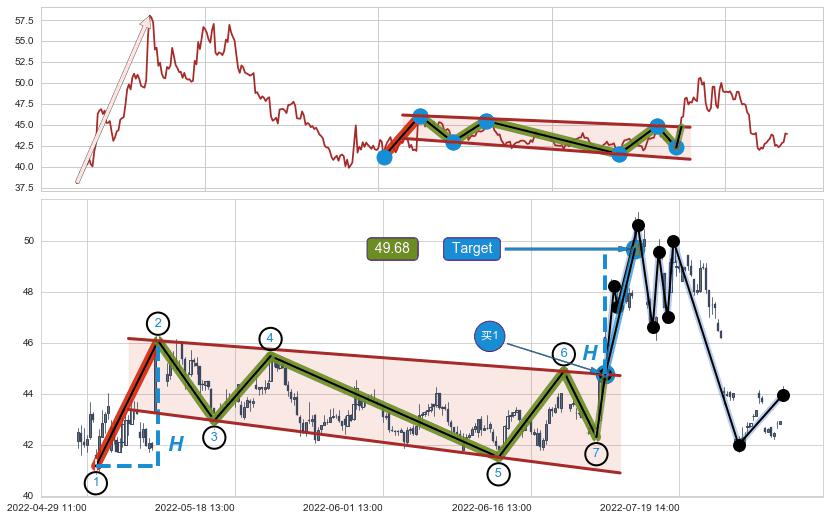➣ 最小中继整理涨幅→𝐇: 4.92 (𝐇旗杆的长度:旗杆起点→顶点)
