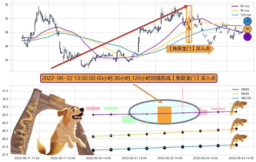 形态多维评估: ⚀ 2022-06-22 13:00:00小时显现 60小时-90小时-120小时均线 【鱼跃龙门】买入点 看多信号,后市看涨,买入
