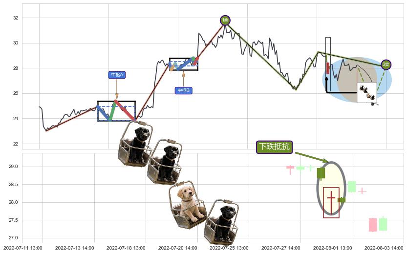 从2022-06-30 13:00至2022-08-03 14:00,共包含50个小时,阶段股价下跌-11.23%,阶段股价变动位移路程比: 1 : 5