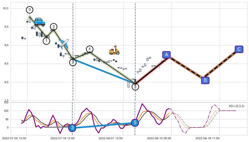 | 3 🅚:旭日东升 ➕ 🌊:波浪理论猜想下跌浪5已形成,猜想后续形成abc反弹上涨(均值回复) ☞ 看多信号 ⇥ 【🅚线】交织【图形】⇥ 综合量化分数: 57 | > |
