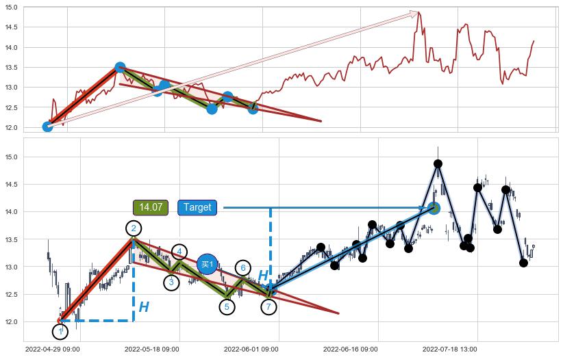 ➣ 已完成【蝙蝠】形态起点X: 04-08:13, 终点D: 07-04:13, 共253交易小时