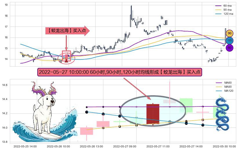 形态多维评估: ⚀ 2022-05-27 10:00:00小时显现 60小时-90小时-120小时均线 【蛟龙出海】买入点 看多信号,后市看涨,买入