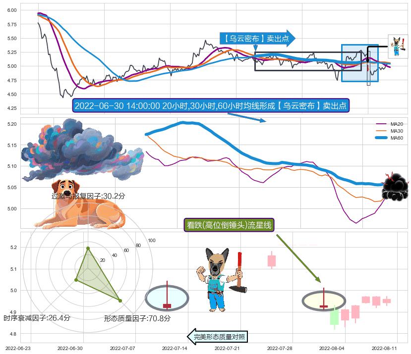 从2022-07-04 14:00至2022-08-03 14:00,共包含45个小时,阶段股价下跌-7.50%,阶段股价变动位移路程比: 1 : 5
