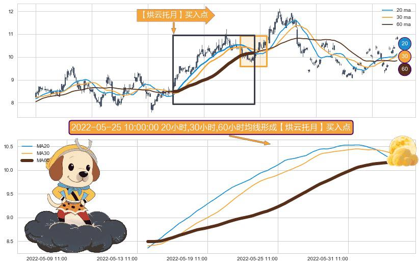 形态多维评估: ⚀ 2022-05-16 09:00:00小时-2022-06-06 10:00:00小时显现 20小时-30小时-60小时均线 【烘云托月】买入点 看多信号,后市看涨,买入