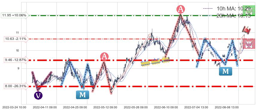 ♞ 10小时均线:10.29,20小时均线:10.13→ 快线>慢线
