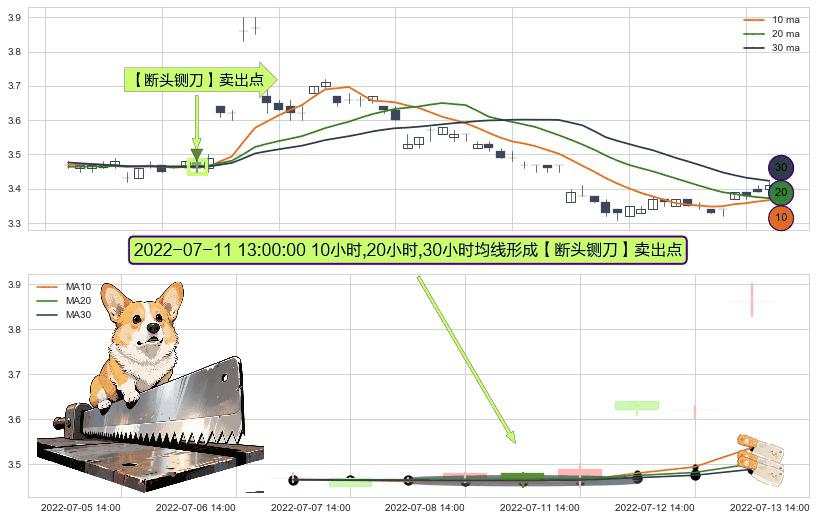 ⚀ 2022-07-11 13:00:00小时显现 10小时-20小时-30小时均线 【断头铡刀】卖出点 看空信号,后市看跌,卖出
