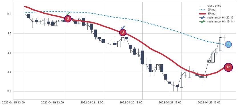 ⚂ 2022-07-11 13:00:00小时突然冒出一根大阴线,一下子下穿三条均线且收盘价收在各条均线之下