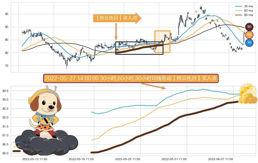 ⚀ 2022-05-19 10:00:00小时-2022-06-08 11:00:00小时显现 30小时-60小时-90小时均线 【烘云托月】买入点 看多信号,后市看涨,买入