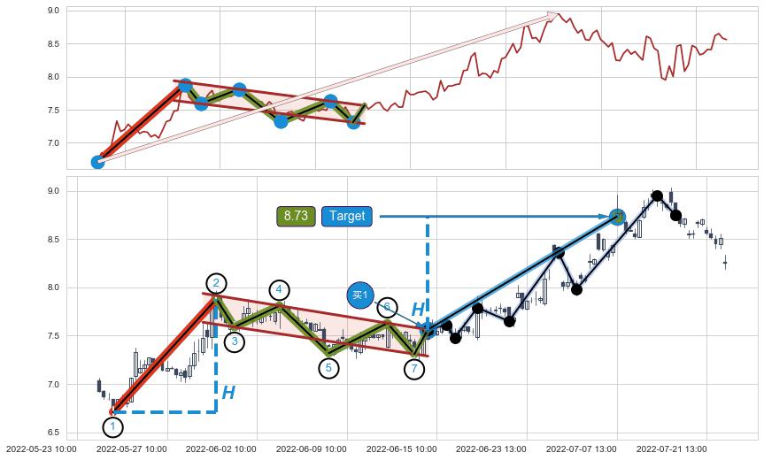 ➣ 最小中继整理涨幅→𝐇: 1.1700 (𝐇旗杆的长度:旗杆起点→顶点)