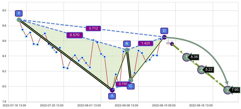 ➣ 已完成【蝴蝶】形态起点X: 06-30:14, 终点D: 08-02:14, 共47交易小时