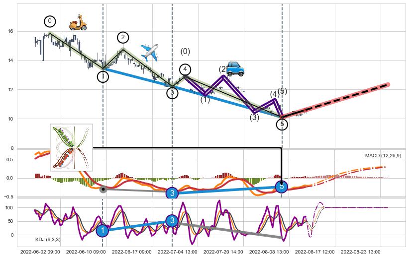 | 5 🅚:【高山滑雪】买入点 ➕ 🌊:波浪理论猜想下跌浪5已形成,猜想后续形成abc反弹上涨(均值回复) ☞ 看多信号 ⇥ 【均线】交织【图形】⇥ 综合量化分数: 52 | > |
