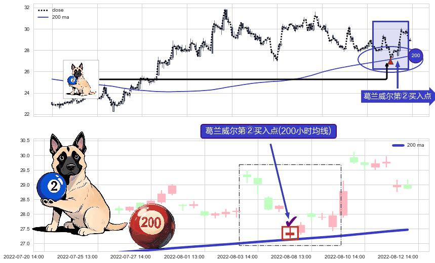⚀ 2022-08-05 13:00:00-小时显现 葛兰威尔均线 200小时均线 第②买入点 上升趋势的中继信号,后市看涨,买进信号