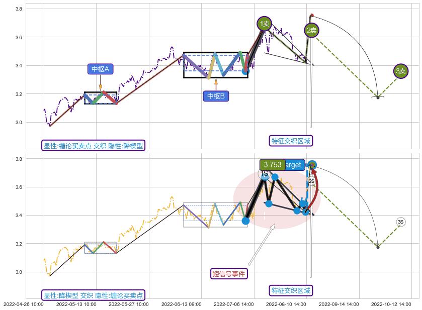 ➢ 智能识别已发生事件:缠论第一类卖点【卖❶】→(07-13:14: 3.670 )