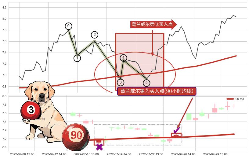 ➢ 图示②④⑥三个波谷均在 6.92 附近成功获得【支撑】→反弹上涨