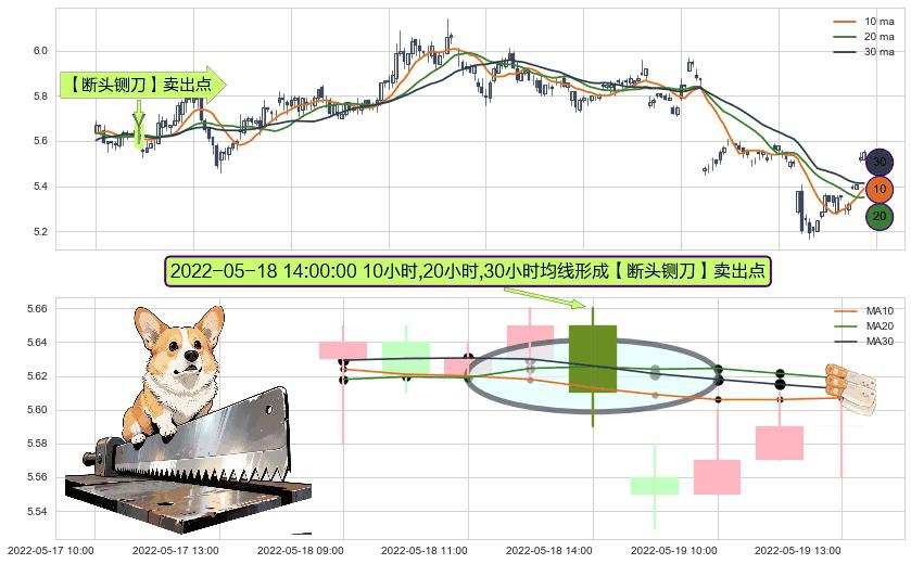 形态多维评估: ⚀ 2022-05-18 14:00:00小时显现 10小时-20小时-30小时均线 【断头铡刀】卖出点 看空信号,后市看跌,卖出