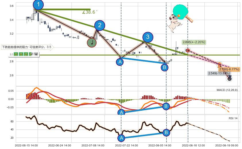 ➢ 预测:2022-08-18 09:00,【试探阻力】稳定目前下跌趋势的前提下,预测价格:2.760
