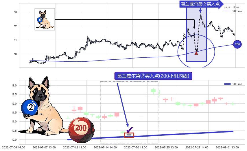 ⚀ 2022-07-18 13:00:00-小时显现 葛兰威尔均线 200小时均线 第②买入点 上升趋势的中继信号,后市看涨,买进信号
