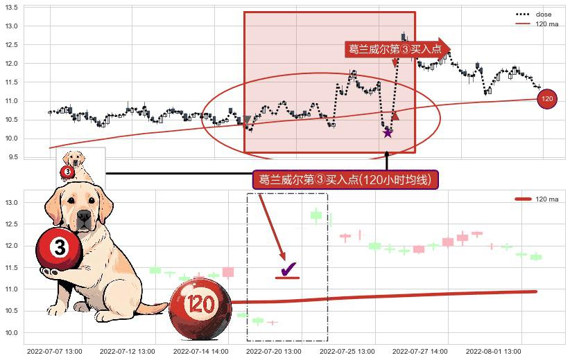 ⚀ 2022-07-19 13:00:00-小时显现 葛兰威尔均线 120小时均线 第③买入点 上升趋势的中继信号,后市看涨,买进信号