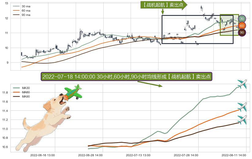 ⚀ 2022-06-23 14:00:00小时-2022-08-10 13:00:00小时显现 30小时-60小时-90小时均线 【战机起航】卖出点 看空信号,后市看跌,卖出