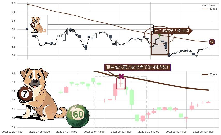 形态多维评估: ⚀ 2022-08-02 14:00:00-小时显现 葛兰威尔均线 60小时均线 第⑦卖出点 下降趋势的中继信号,后市看跌,卖出信号