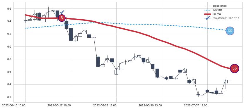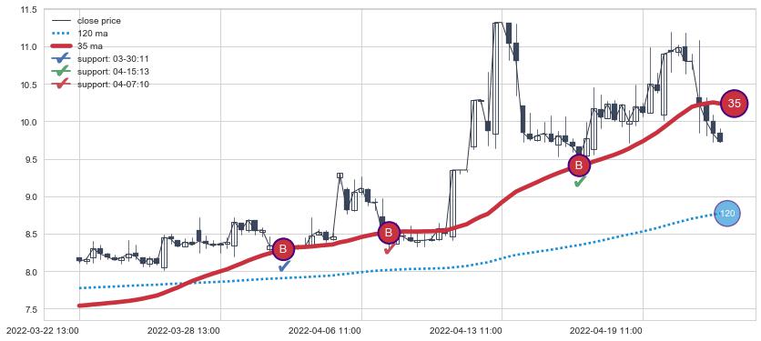 上涨趋势05-10 13:00-06-14 09:00,均线120, 35确认关键支撑3处