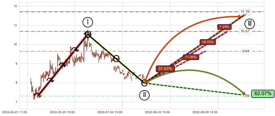 ♘ 阻力价格位10.61,可信任强度54.45%,距离最后交易2022-08-12 14:00形成的收盘价格8.18相差 +29.71%