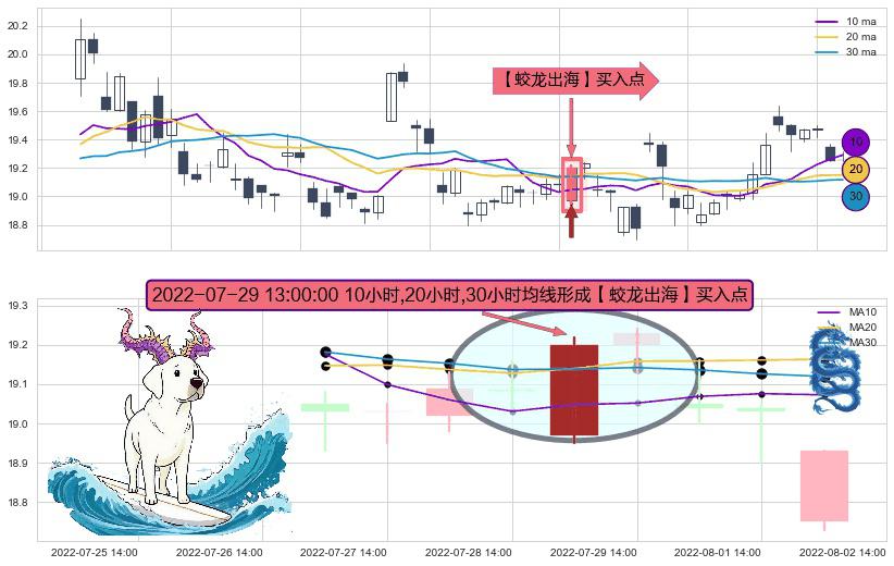 形态多维评估: ⚀ 2022-07-29 13:00:00小时显现 10小时-20小时-30小时均线 【蛟龙出海】买入点 看多信号,后市看涨,买入