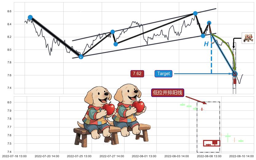 ➢ 【已达成】最小【整理】第一目标价格→(08-05:13: 7.62 ), 后续继续【整理】下跌动力依然存在,下跌空间适中