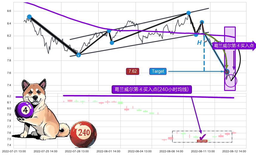 ♘ 阻力价格位7.89,可信任强度53.84%,距离最后交易2022-08-12 14:00形成的收盘价格7.61相差 +3.72%