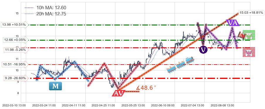 ♘ 阻力价格位13.98,可信任强度56.37%,距离最后交易2022-08-12 14:00形成的收盘价格12.65相差 +10.51%