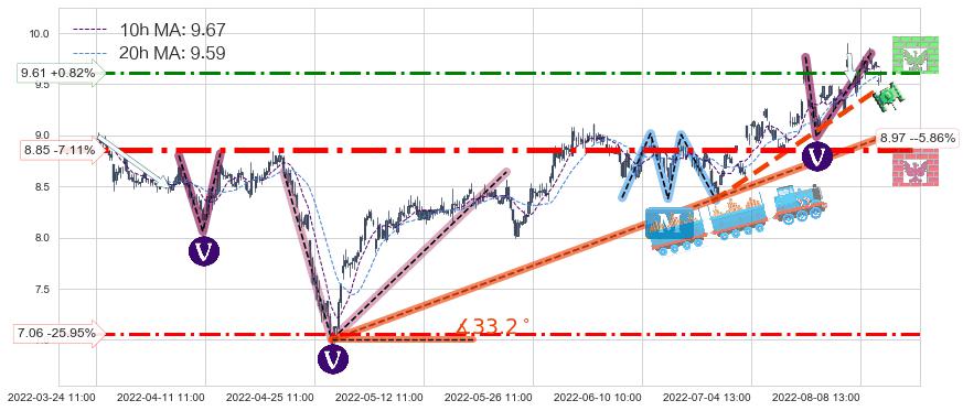 ♞ 10小时均线:9.67,20小时均线:9.59→ 快线>慢线