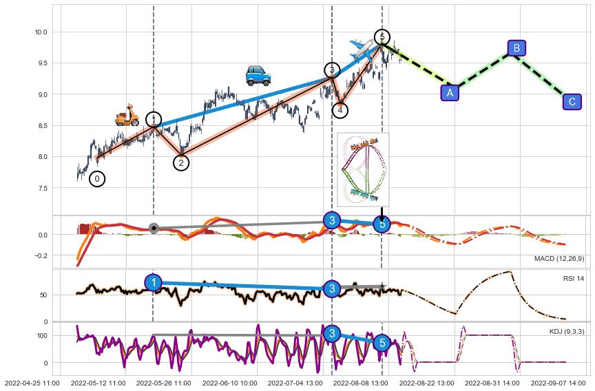 ➣ 1,3,5驱动浪MACD, RSI, KDJ走势都出现【常规背离】反转信号增强